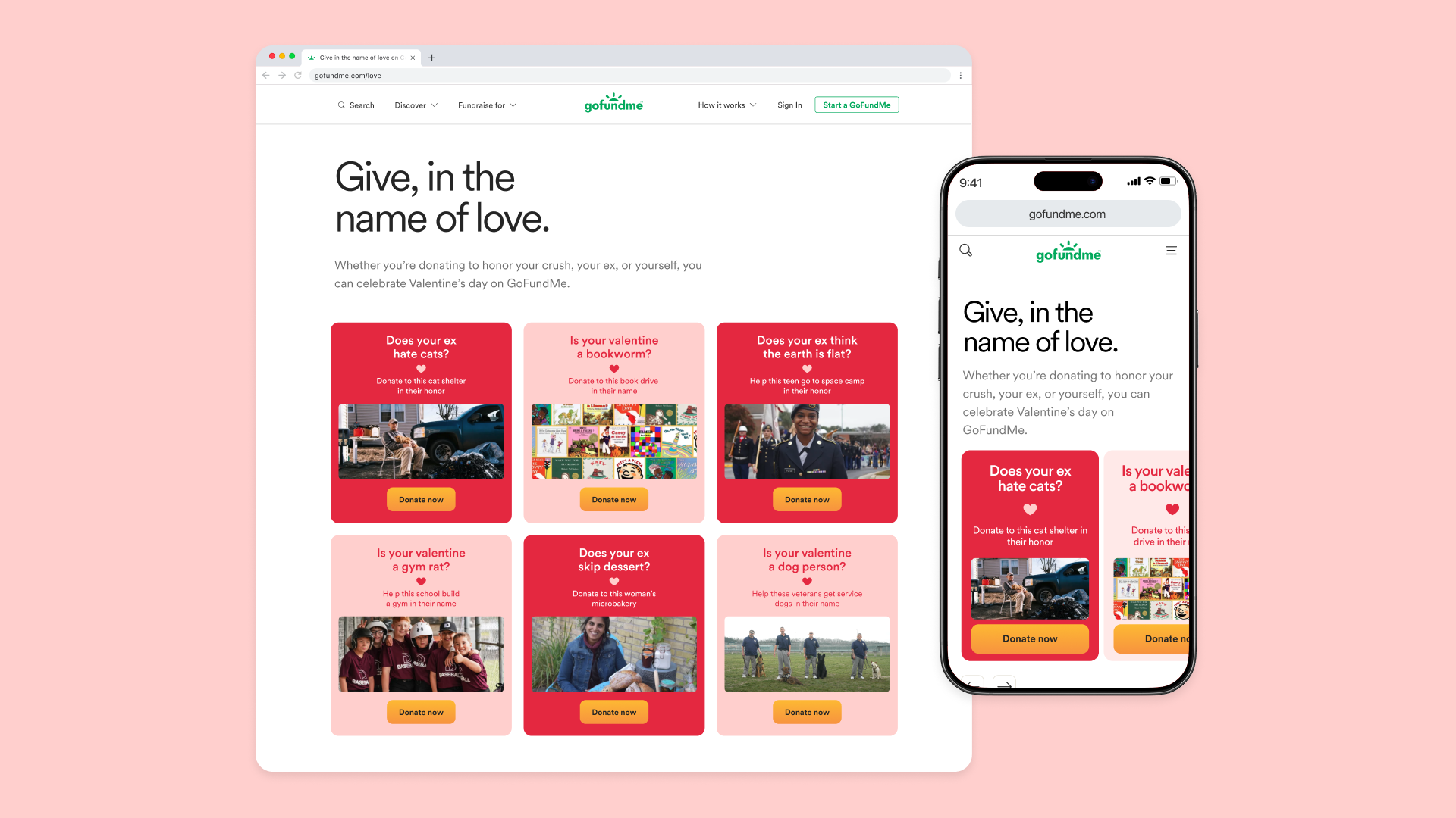 This campaign also came to life on social, various other paid media spots and on our landing page where users can find their Valentine’s Day fundraiser match.